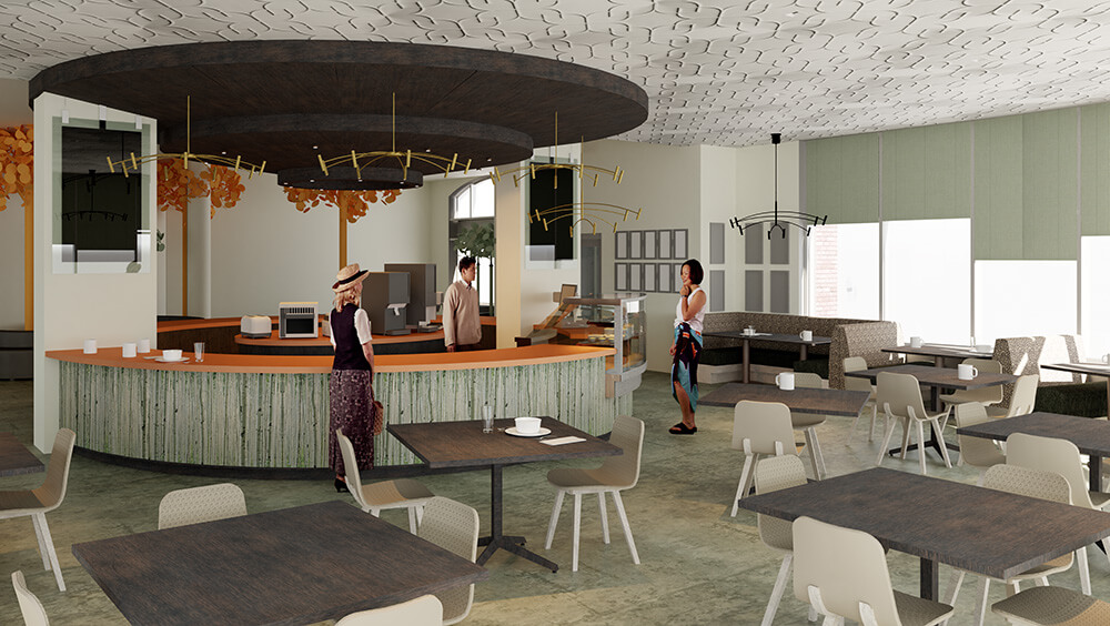 Tasked with resolving a social concern through design, Chapman’s capstone project tackled the conversion of a former bus terminal into a church-owned community hub under whose roof “all aspects of social living can be looked after” – including a sanctuary, a community hall, a childcare centre, a communal kitchen, an internet lounge, a café, and a retail outlet, as well as plenty of office and classroom space.