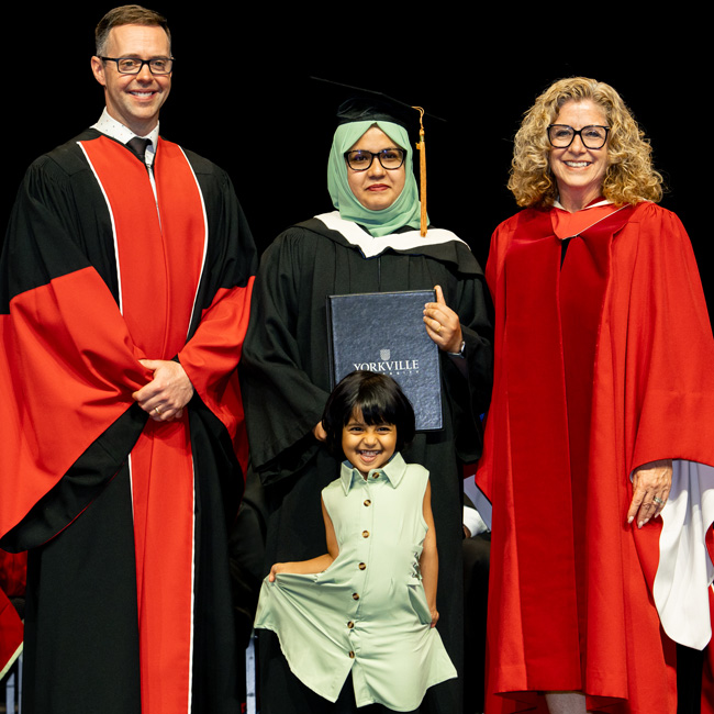 “As a graduate of Yorkville, you join a community of alumni who literally number in the thousands – they are all across Canada and, indeed, all around the world…We invite you to think of those alumni as your professional network. Look for them online, find them on LinkedIn, find them in your communities – and know that they are a source of connection for you as you move forward.”