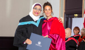 Armed with a bouquet of flowers, Abdel-Gawad said it was Bustamante who made her believe in herself and in her ability to pursue her passion for higher education – a passion she’d previously postponed for so long due to the full-time commitments of motherhood and working life.